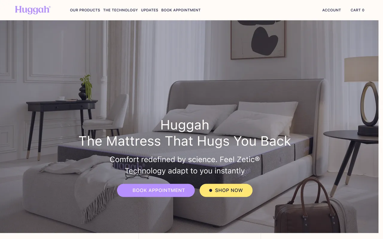 Experience revolutionary sleep with Huggah's metamaterial mattress. Enjoy deep comfort, natural alignment, and wake up restored every morning.