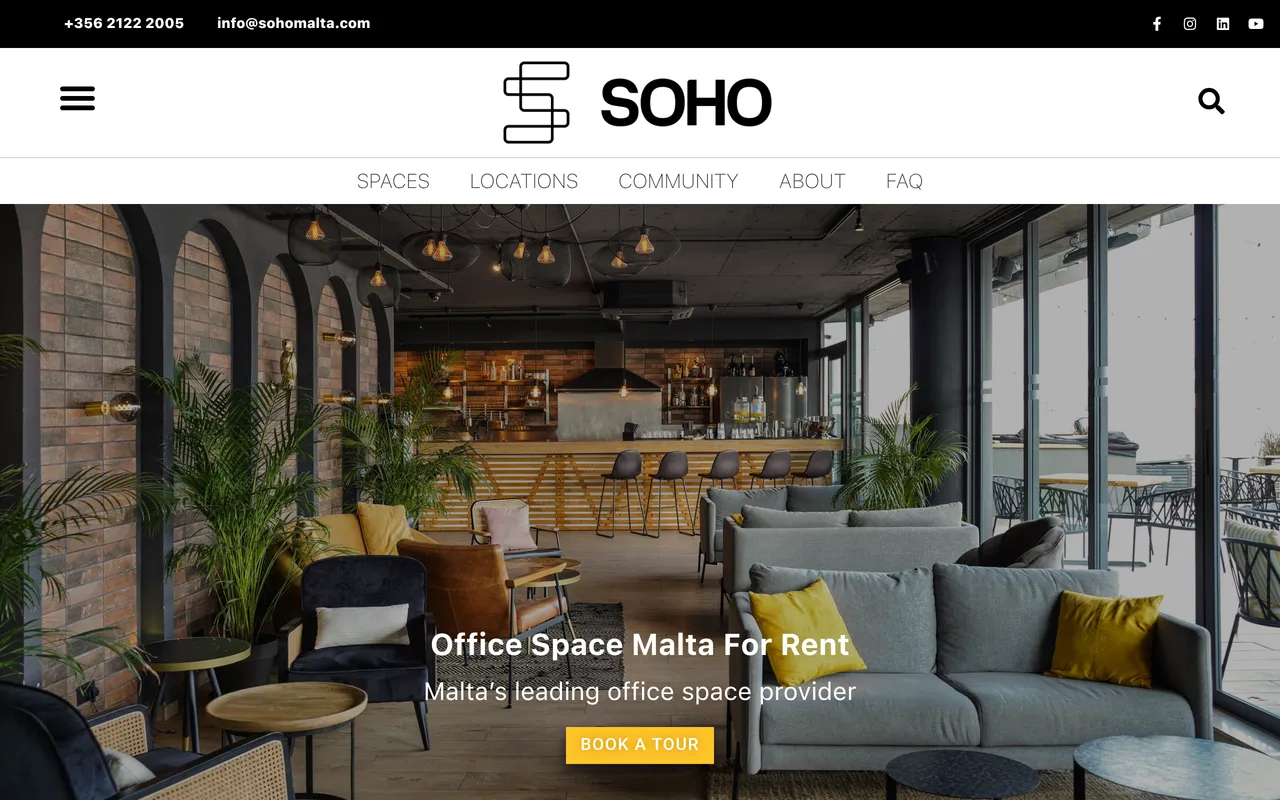 Founded in Malta in 2013, SOHO was created to address the need for more modern and adaptable office space on the islands. Since then, it has grown into a major workspace brand with three locations in Malta’s prime business districts, including Gzira and St. Julian’s, while also building a large international-minded member community.